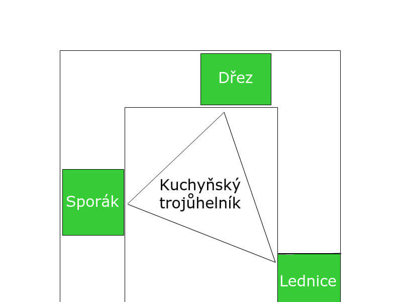 Jedna z možností rozvržení kuchyňského trojúhelníku
