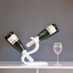 Rovněž designové stojany na víno jsou nejčastěji kovové, ty levnější dokonce z plastu, zejména pak držáky na jednu lahev.