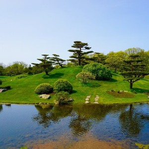 4. Parkové – tento okrasný typ zahrady využívá výhledy na krajinu mimo zahradu, jako jsou hory nebo chrámy, jejich začleněním do pohledu, aby zahrada vypadala větší, než ve skutečnosti je.
