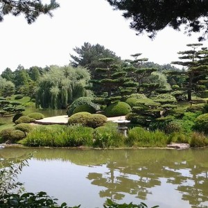 Specifikem japonské zahrady je nakládání s prostorem – výše dřeviny a větší kameny jsou blíže ke vstupu, dále jsou umístěny menší exempláře.
