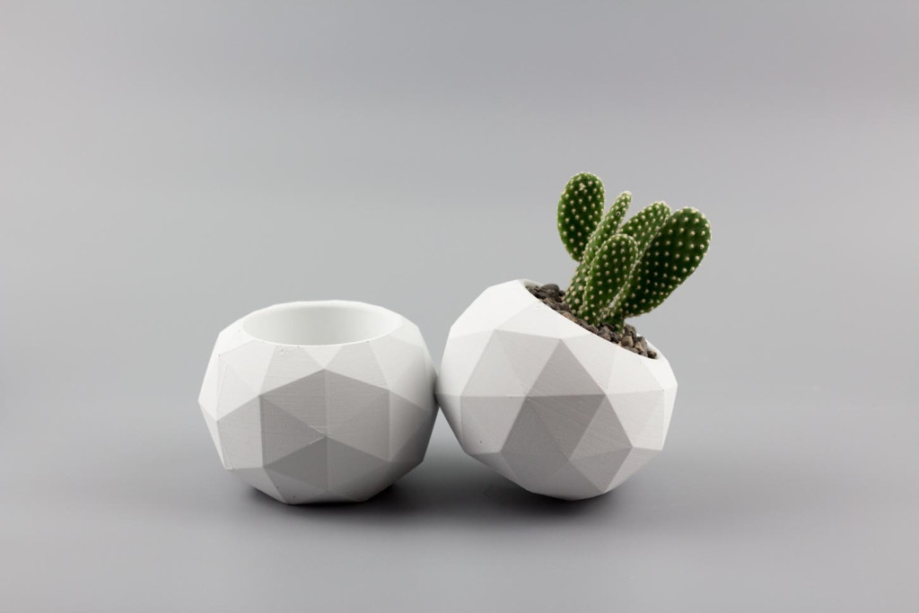 Jednoduchý, ale elegantní geometrický betonový květináč pro pěstování sukulentů a kaktusů. 400 Kč